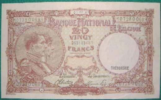 | 20 Francs | 28.8.1923 | 94 | Light aging/soiling | AVF | 9.50sold |